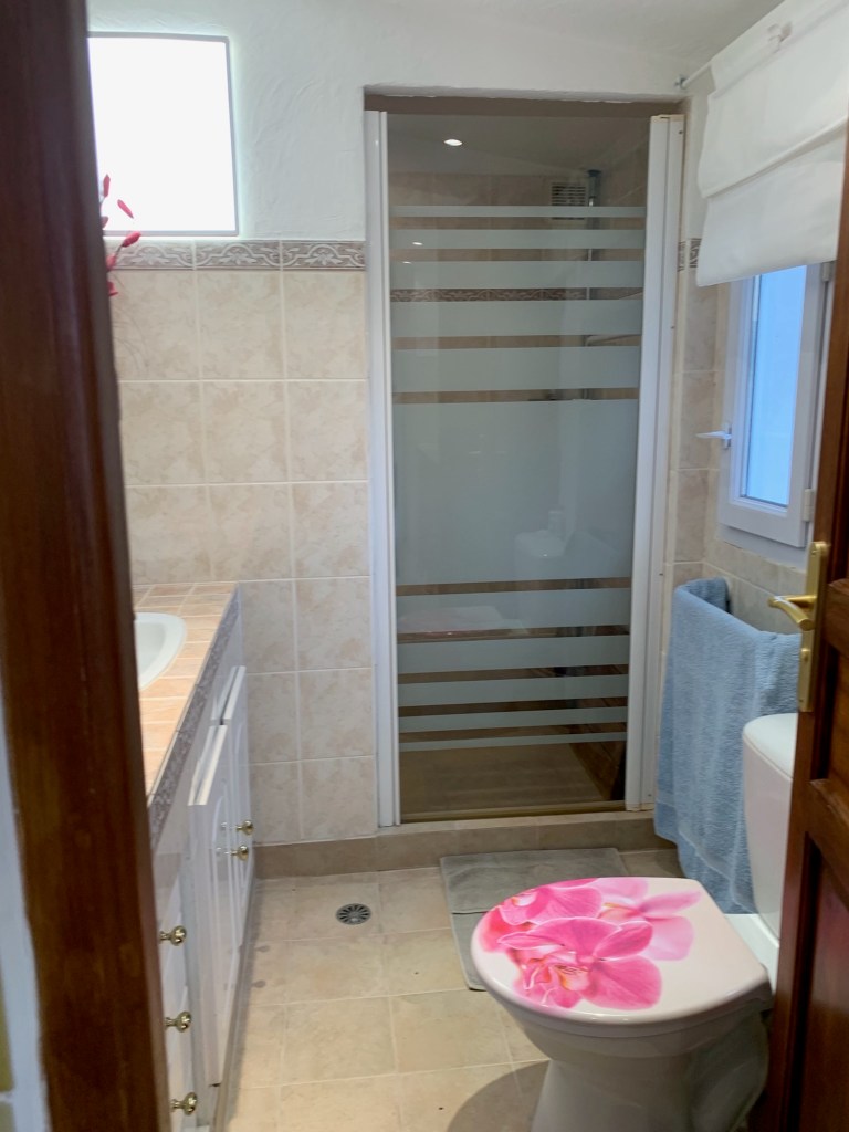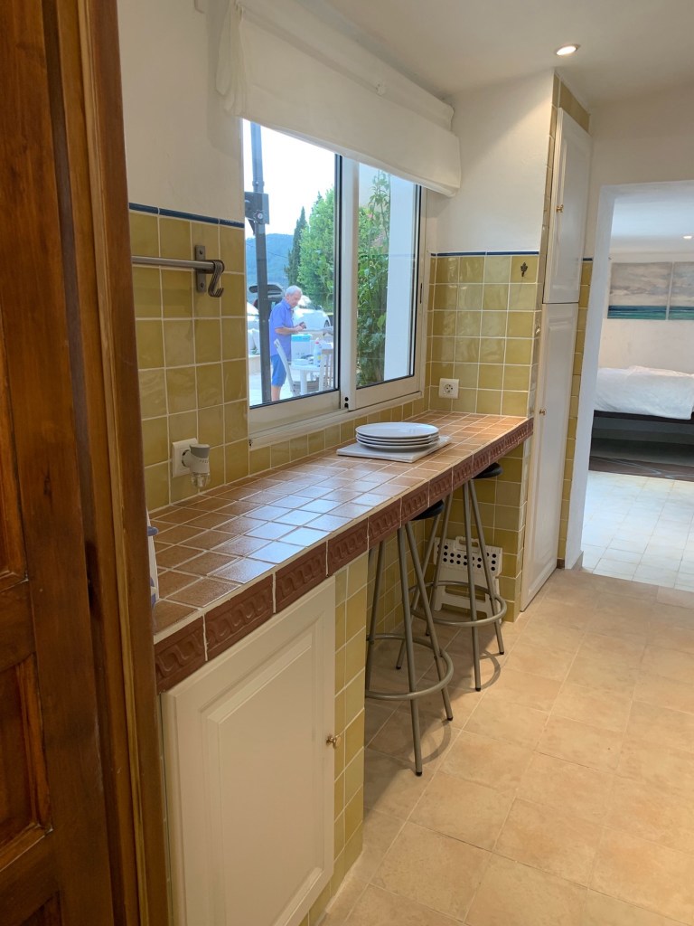 Nina has a double bed, with it’s own galley kitchen and breakfast bar overlooking the swimming pool, as well as an en-suite toilet and shower.